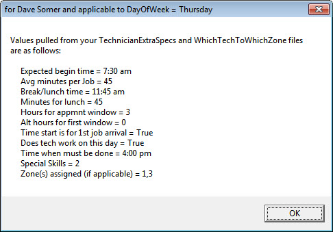 Based on this dynamic (and especially when wanting to judge the efficacy of GraphHopper-based Whole-Roster Optimizations) it became evident you might want to have easy visibility into such properties as have been set for a particular technician. In particular, you might want to have visibility that comes much easier than by opening and reading from within a separate file.