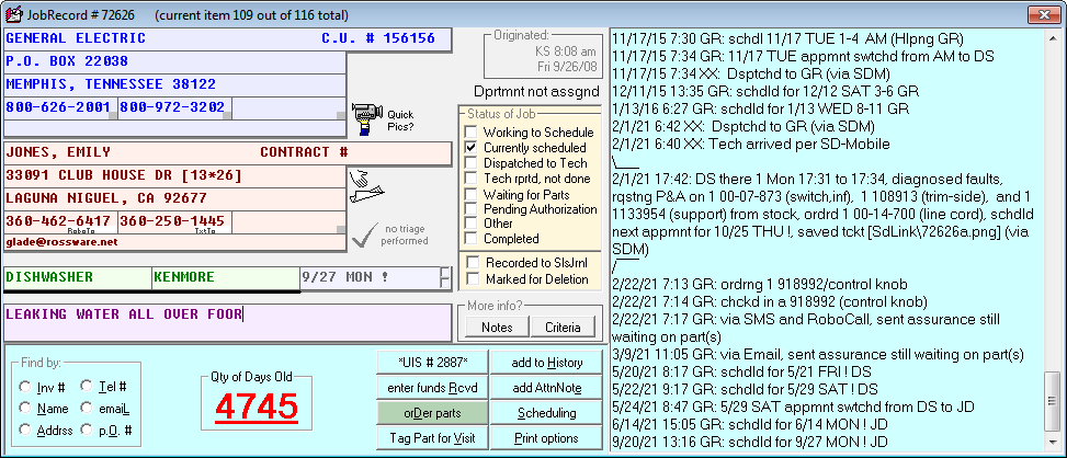 As first announced here, automated sending of parts-assurance messages has been a big hit. Scores upon scores of Rossware users are using the system to automatically send customers messages, when waiting on parts, assuring that they've not been forgotten.