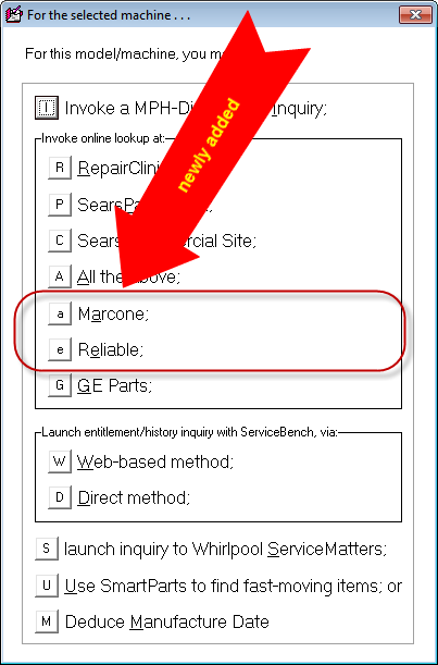 - Added Marcone and Reliable to Model Lookup Options