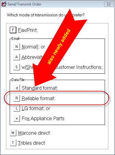 Several other vendors have a system where you can upload a file, via their websites, to create an order. We just added the option to create a file in the particular format that's required by Reliable Parts, if you wish to use this method with them: