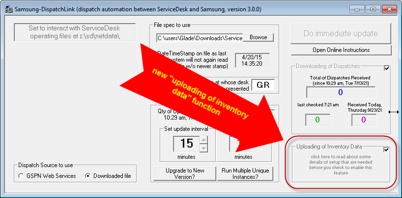 If you do work for Samsung, and if Samsung wants to be provided with information regarding such Samsung parts inventory as you have in stock, our Samsung-DispatchLink utility will now automatically upload that information.
