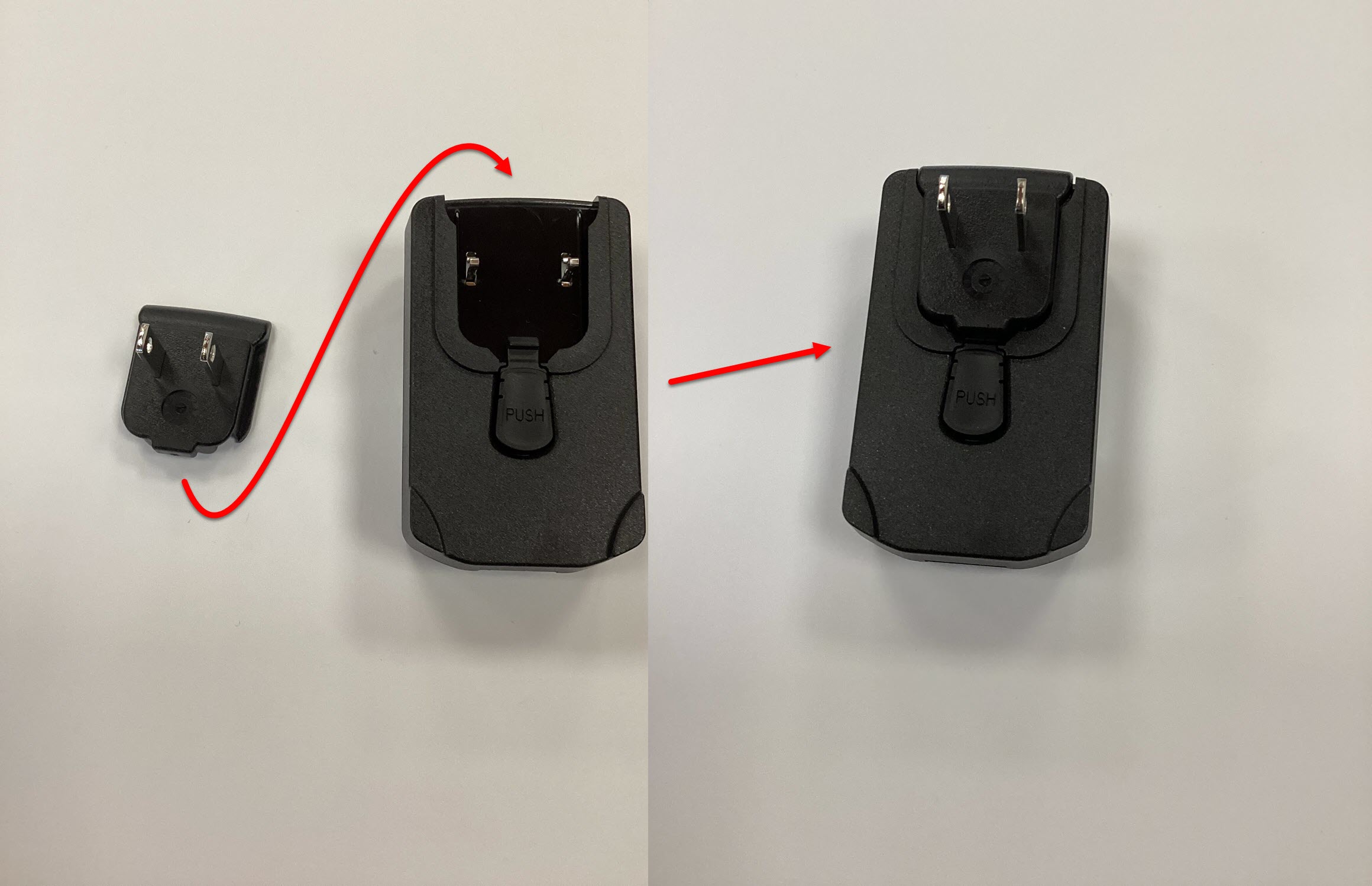 - Wall power adapter for charging (you must attach the wall outlet plug before it can be plugged into a wall outlet as pictured below)