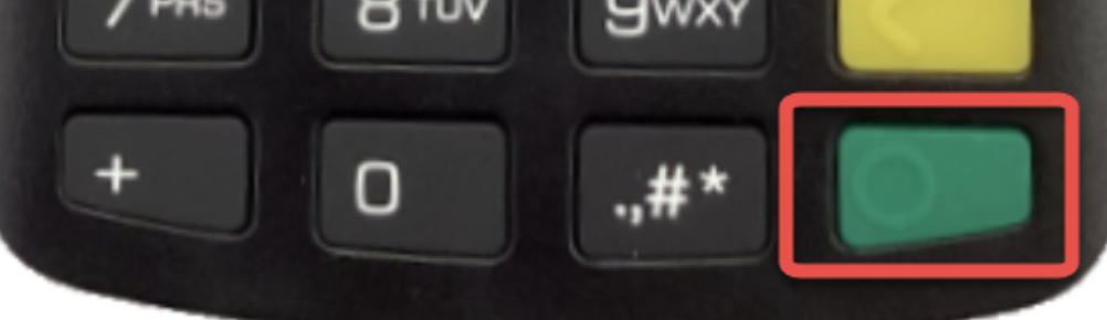 - Power down the device by holding the symbol button (.,#*) and the yellow button simultaneously: Note: If the device is plugged into power, it will instead reboot.