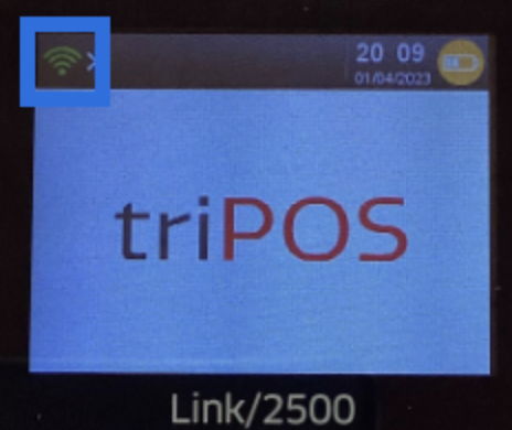 On the card reader, the screen will display the triPOS logo. The white WiFi icon will turn green, indicating the card reader is connected to WiFi: