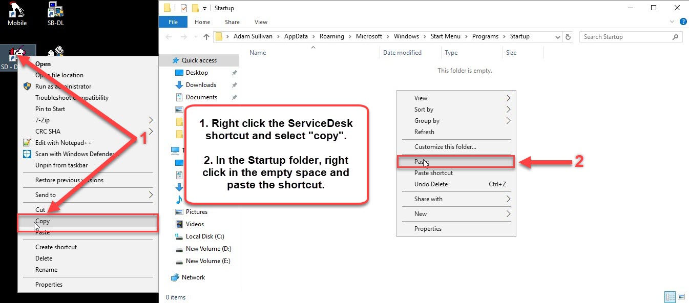 Now you can simply copy and paste the shortcuts into the Startup folder. If you want to select multiple shortcuts at once, you can hold down the Ctrl key and click which shortcuts you want to add. Then, while still holding down the Ctrl key, press C to copy them. Next, either right click and paste, or hold down the Ctrl key and press V to paste them into the Startup folder.