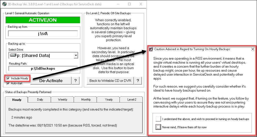 This new version of the SD Backup utility has a few new features such as; the ability to do hourly backups within the RSS environment, the ability to force Level 1 backups, and the ability to exclude certain subfolders to decrease the time required for Level 2 backups.