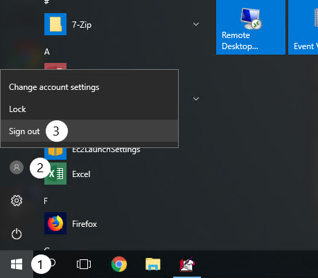 There are two options for properly ending your session. The first is done through the start menu. Simply open it, click your profile images, then press 'Sign out'.