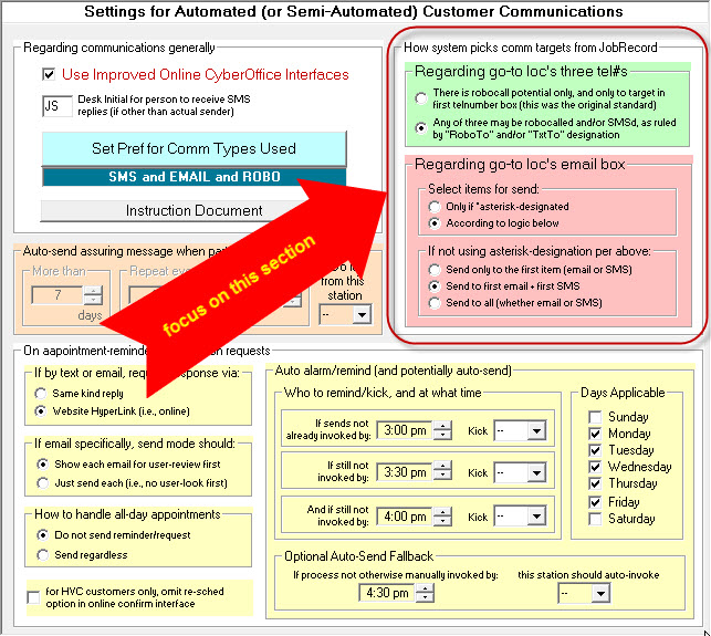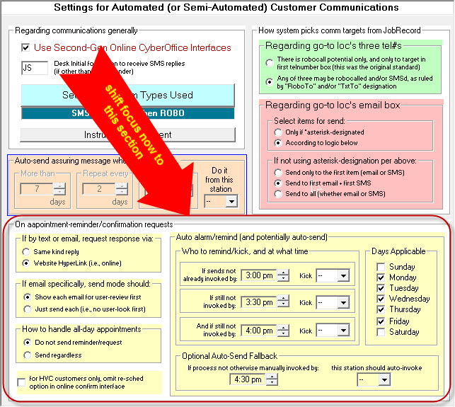 As it's captioning implies, this section is all about elements of setup that involve sending appointment-reminder/confirmation-requests. For detailed consideration, we want to first focus on this sub-section: