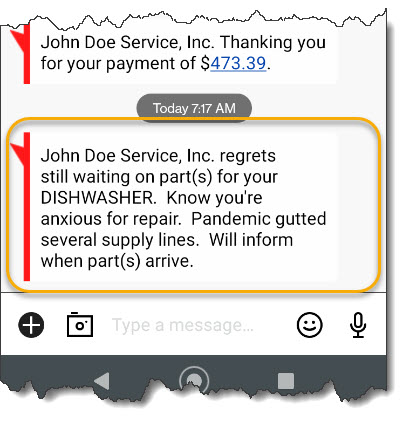 This was initially created in reaction to the COVID-19 pandemic, which produced massive disruption in part supplies. That, in turn, produced a huge burden on service companies in fielding endless inquiries and complaints from customers anxious for repairs that cannot be completed until critical parts arrive.